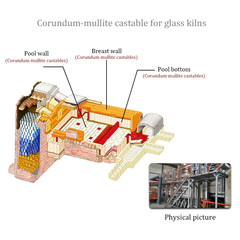 It is widely used in key parts of glass furnaces such as melting pools, regenerators, and feeding channels. It can be cast on-site or prefabricated, adaptable to irregular furnace structures, effectively resisting high-temperature erosion and chemical corrosion, reducing heat loss, and extending the service life of the furnace.